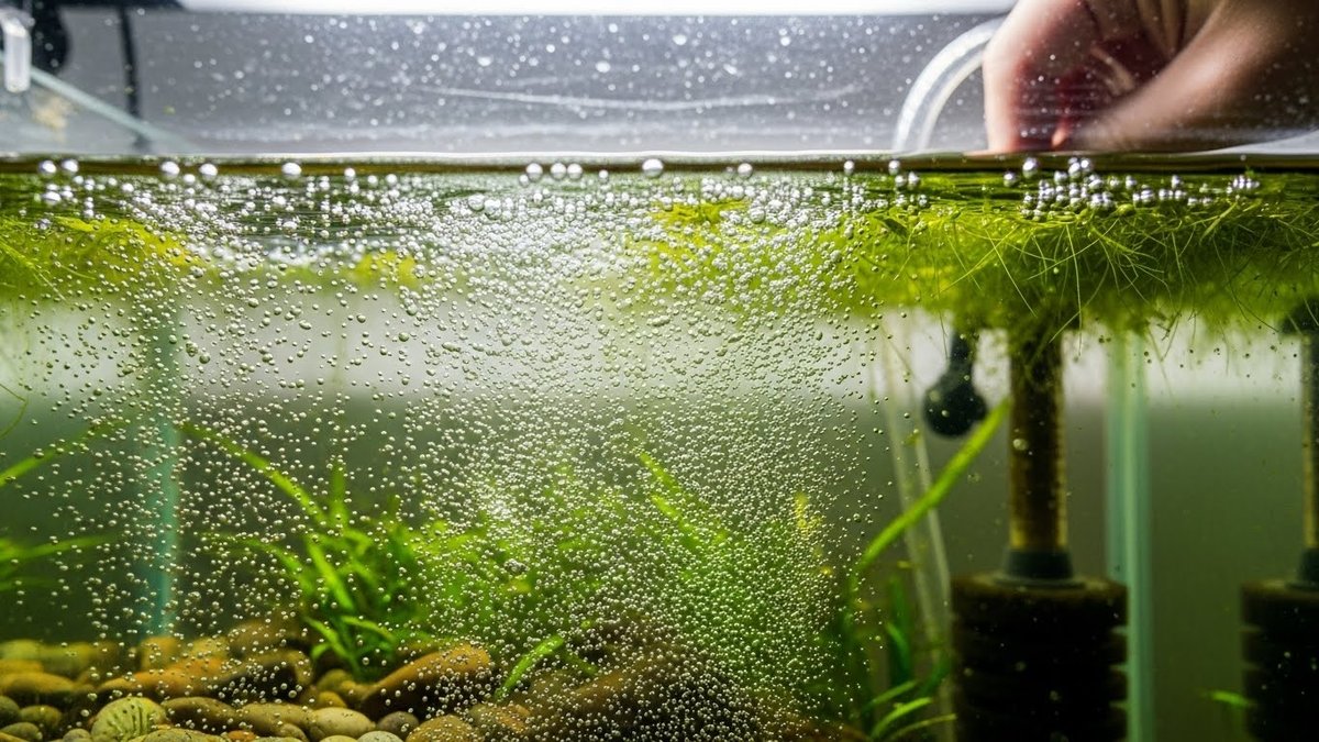 エアストーンや吐出口の位置を少し移動して、気泡が水面に直撃しない場所にすることで泡の生成を抑えられます。強さも小刻みに変えて、泡が増えない最適な設定を探しましょう。気泡が水流とぶつかる場所を避けるだけで改善することがあります。