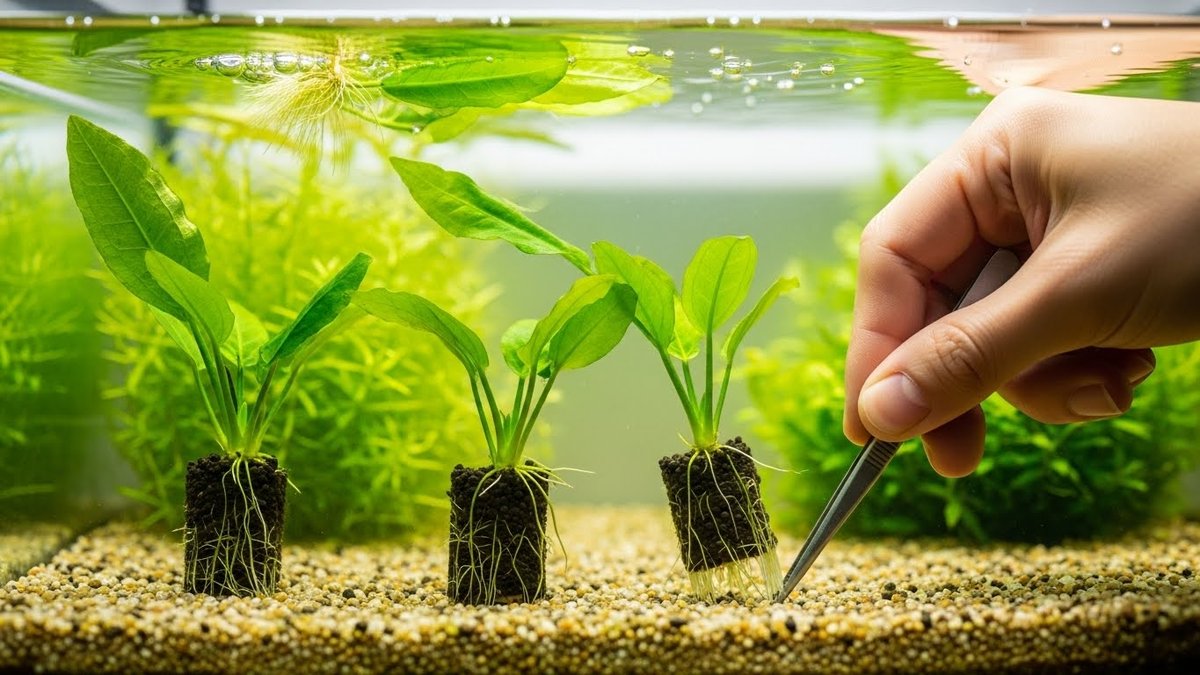 植え付けが浅いと根が十分に土に触れず、ちょっとした水流や魚の動きで抜けやすくなります。特に有茎草は根元をしっかり埋めないと浮きやすいです。植え付け時は根の長さを確認し、適切な深さで差し込むことが重要です。