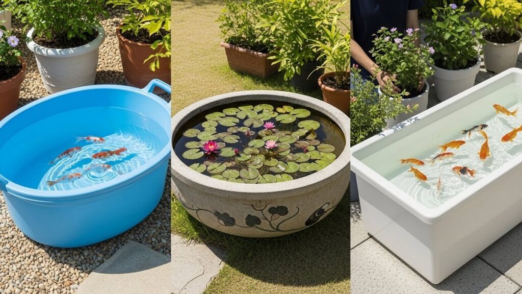 屋外で金魚を育てる容器の選び方ガイド|プラ舟・睡蓮鉢・FRPの違い