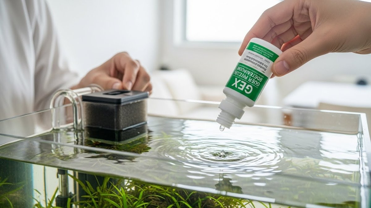 gexの高濃度バクテリアを使う基本は、量を守る、分散して入れる、状況に応じて複数回に分けることです。まずキャップや計量部分で必要量を測り、直接スポイトや注ぎ口からフィルター近くや水流のある場所へゆっくり注ぎます。水温が低すぎたり高すぎたりする場合は、まず水温を落ち着かせてから投入してください。