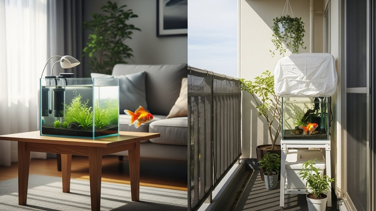 建物の振動が伝わる場所(階段の近くや重機が通る道路側など)も注意が必要です。静かな位置を選ぶことで金魚が落ち着いて過ごせます。