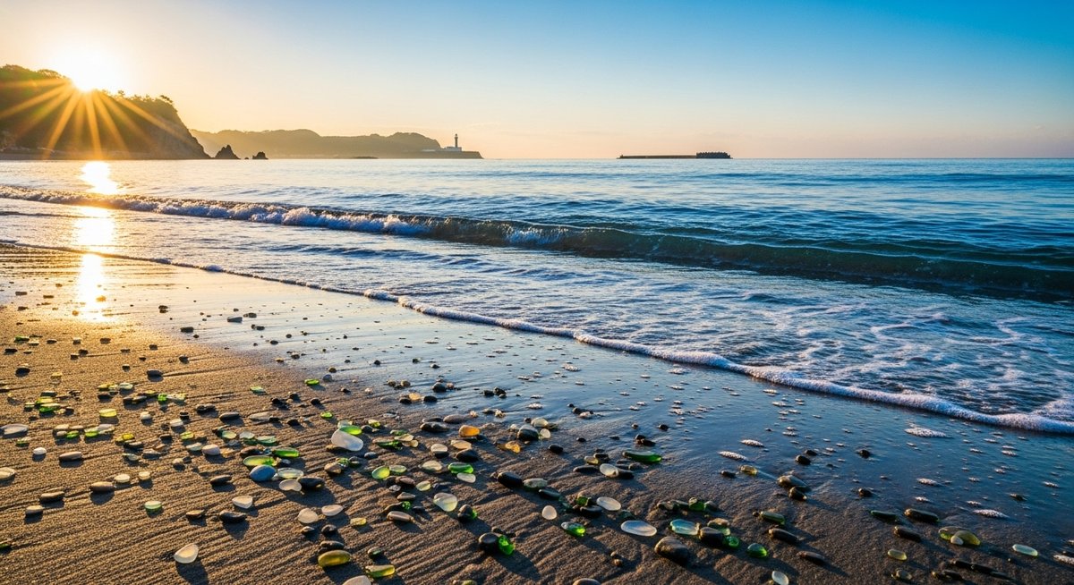 砂粒が粗めの場所ではガラスの輪郭が目立ちやすく、小石混じりの浜は色の対比で見つけやすくなります。人が少ない時間帯を選ぶと落ち着いて探せますし、潮の変化を見ながら場所を移動するのも有効です。